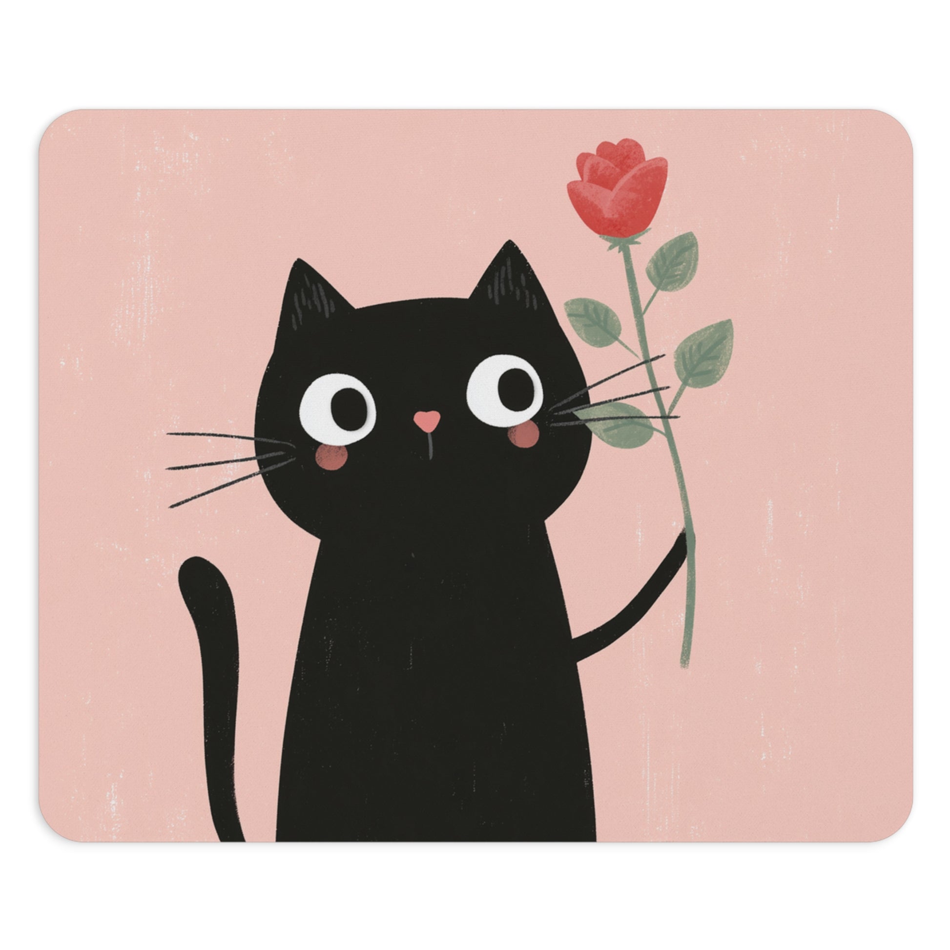 Brighten up your workspace with this adorable round mouse pad featuring a cute black cat holding a red rose on a soft pink background. Perfect for cat lovers and fans of kawaii style, this floral mouse mat adds a touch of charm to any office, school, or home setup. The smooth surface ensures precision tracking for all mouse types, while the non-slip base keeps it securely in place. A thoughtful and unique gift for her, students, coworkers, or anyone who appreciates playful, artistic desk decor.